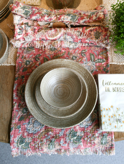 En bordbrikke inspirert av paisleymønster laget av 100% bomull, som tilfører en følelse av bevegelse og liv til bordet, noe som gjør den perfekt for festlige anledninger og sommersamlinger