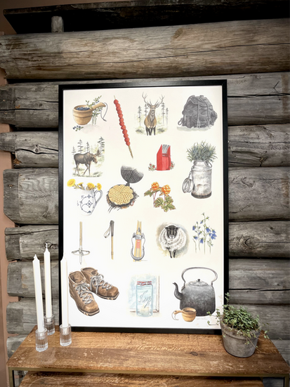 Mettes egne tegninger med nostalgiske motiver, hvor hver strek forteller en historie. Disse unike kunstverkene bringer tilbake minner fra svunne tider og gir en varm, personlig touch til ethvert hjem. Perfekte som gaver eller til å pryde dine egne vegger.