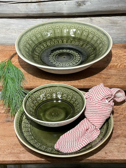 Denne middagstallerken kombinerer funksjonalitet med et tidløs design. Det elegante mønsteret rundt kanten er både klassisk og unik.
